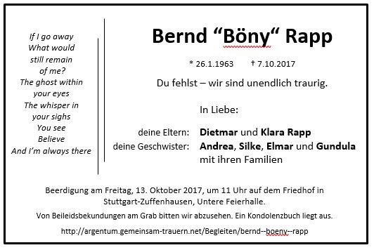 Bernd "Böny" Rappgestorben am 7. Oktober 2017