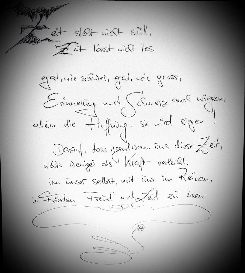 Du warst mir immer ein lieber Schwiegersohn, schade daß sich unsere Wege getrennt haben. Ich werde immer an dich denken und irgendwann werden wir uns wiedersehen.